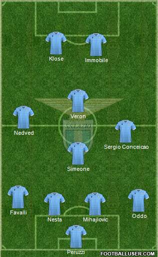1- F. Muslera · 26- S. Radu · 2- S. Lichtsteiner · 20- G. Biava · 3- André Dias · 24- C. Ledesma · 32- C. Brocchi · 10- M. Zaraté · 8- Hernanes · 6- S. Mauri · 22- S. Floccari