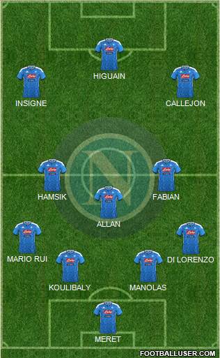Meret · Koulibaly · Manolas · Di Lorenzo · Ghoulam · Casemiro · Allan · Fabian Ruiz · Lozano · Insigne · Mertens