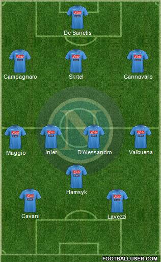 Cavani · Lavezzi · Hamsik · Maggio · Zuniga · Inler · Dzemaili · Campagnaro · Aronica · Cannavaro · De Sanctis