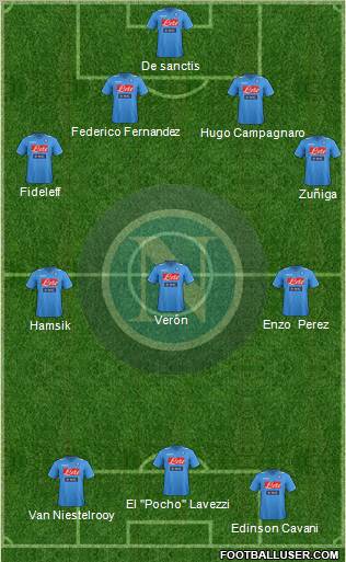 Cavani · Hamsik · Lavezzi · Maggio · Dossena · Inler · Gargano · Aronica · Cannavaro · Campagnaro · De Sanctis
