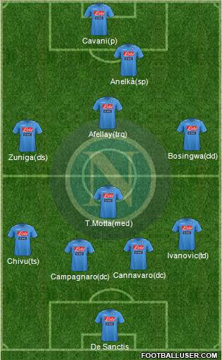 De Sanctis · Aronica · Campagnaro · Cannavaro · Dzemaili · Inler · Maggio · Dossena · Hamsik · Cavani · Lavezzi