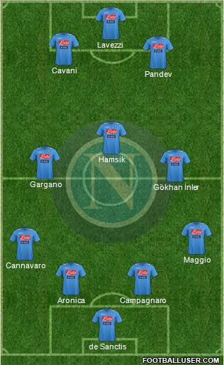 Cavani / Pandev · Lavezzi · Hamsik · Maggio · Zuniga · Inler / Donadel · Gargano / Dzemaili · Rinaudo · Aronica · Campagnaro · De Sanctis