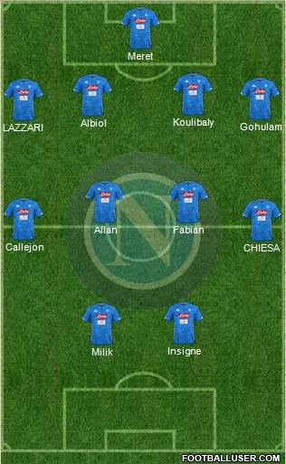 Meret · Koulibaly · Manolas · Ghoulam · Di Lorenzo · Allan · Zielinski · Inisgne · Fabián · Lozano · Milik