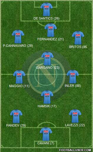 Cavani · Lavezzi · Hamsik · Maggio · Dossena · Inler · Gargano · Campagnaro · Aronica · Cannavaro · De Sanctis