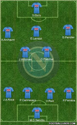 De Sanctis · Britos · Cannavaro · Gianluca · Salvatore · Gökhan · Hamsik · Maggio · Pandev · Lavezzi · Cavani