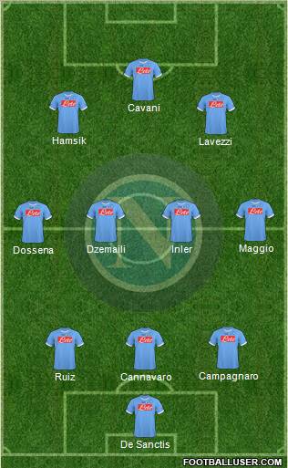 Cavani · Lavezzi · Santana · Dossena · Maggio · Inler · Dzemaili · Campagnaro · Cannavaro · Aronica · De Sanctis