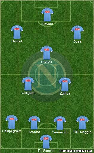cavani · lavezi · iturbe · pereyra · hamsik · gargano · fucile · zuñiga · aronica · cannavaro · de sanctis