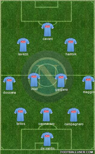 De Santis · Cannavaro · Rinaudo · Zuñiga · Dossena · Gargano · Inler · Hamsik · Maggio · Cavani · Lavezzi