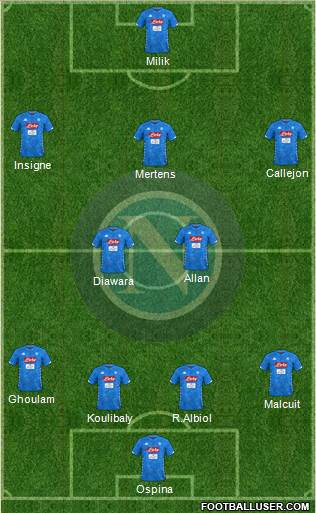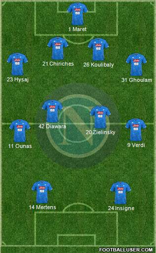 25- D. Ospina · 1- A. Meret · 23- E. Hysaj · 19- Maksimovic · 13- Luperto · 31- F. Ghoulam · 2- Di Lorenzo* · 26- Koulibaly · 44- Manolas* · 3- Biraghi* · 18- G. Gaetano · 55- L. Palmiero · 5- D. Baselli* · 8- F. Ruiz · 37- A. Ounas · 20- Zielinski · 7- Callejón · 24- Insigne · 14- Mertens · 11- James R.* · 99- A. Milik · 9- M. Icardi*
