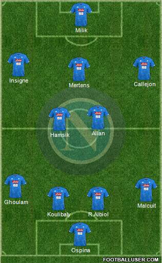 Meret · Koulibaly · Manolas · Malcuit · Mario Rui · Fabian · Allan · James · Lozano · Insigne · Milik