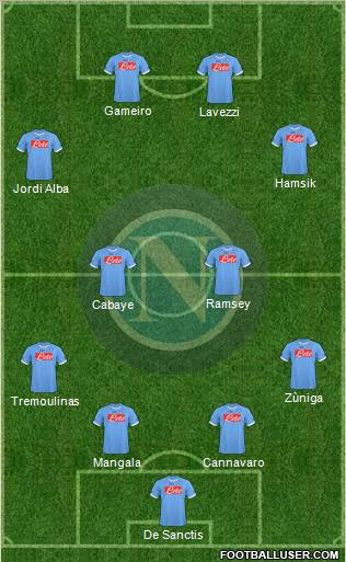 De sanctis · Cannavaro · campagnaro · zuñiga · Maggio · Gargano · Yebda · hamsik · Lavezzi · Cavani · Mascara