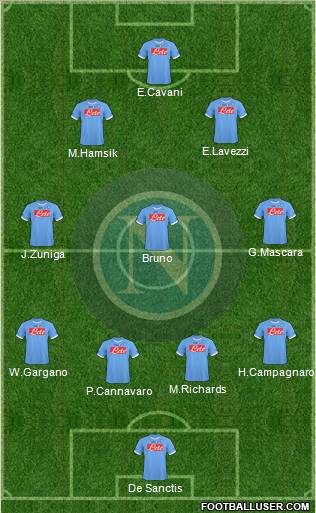 Cavani · Lavezzi · Hamsik · Magio · Züniga · Huddlestone · Gargano · Cannavaro · Campagnaro · Santacroce · De Sanctis