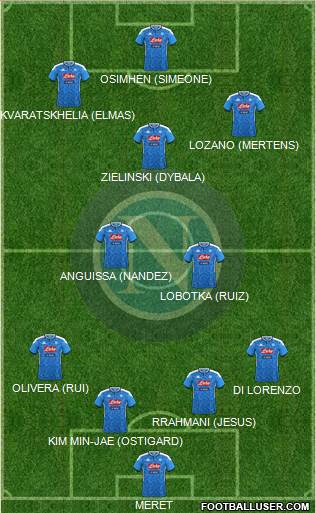 Meret · Min-jae · Rrahmani · Olivera · Di Lorenzo · Lobotka · Zielinski · Anguissa · Kvaratskhelia · Berardi · Osimhen
