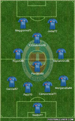 Smith/77 · Paci/70 · Camporese/71 · Garcia/67 · Morganella/64 · Porcari/68 · Rigoni/68 · Mariannini/66 · P.Coutinho/74 · Jeda/72 · Meggiorini/73