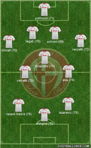 insigne (75) · razack traore (76) · lazarevic (78) · verratti (75) · abu (74) · milanetto (70) · donati (70) · renzetti (72) · schiavi (69) · legati (70) · pellizzoli (71)