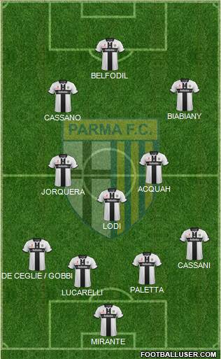 Mirante · Lucarelli · Paletta · De Ceglie · Cassani · Lodi · Mariga · Acquah · Belfodil · Jorquera · Cassano