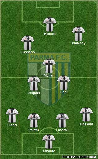 Mirante · Gobbi · Lucarelli · Paletta · Cassani · Jorquera · Lodi · Acquah · Cassano · Belfodil · Palladino