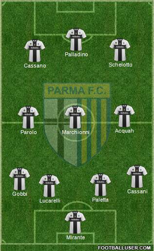 Mirante · Paletta · Lucarelli · Cassani · Molinaro · Marchionni · Parolo · Acquah · Sansone · Biabiany · Cassano