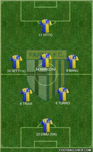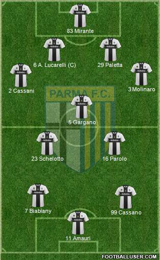 17Palladino · 11Amauri · 23Schelotto · 16Parolo · 30Acquah · 32Marchionni · 2Cassani · 3Molinaro · 29Paletta · 6Lucarelli · 83Mirante