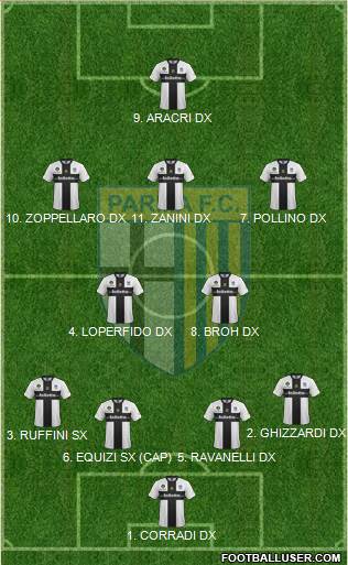 Mirante · Molinaro · Lucarelli · Cassani · Paletta · Marchionni · Parolo · Gargano · Biabiany · Cassano · Amauri
