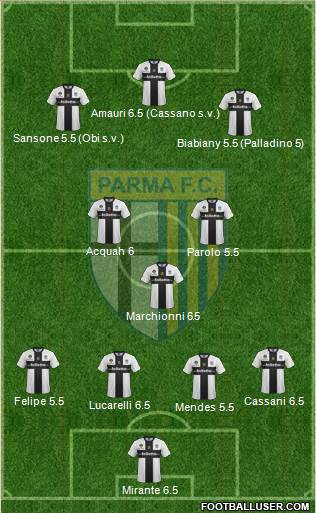Mirante · Lucarelli · Paletta · Gobbi · Cassani · Marchionni · Parolo · Gargano · Sansone · Biabiany · Amauri
