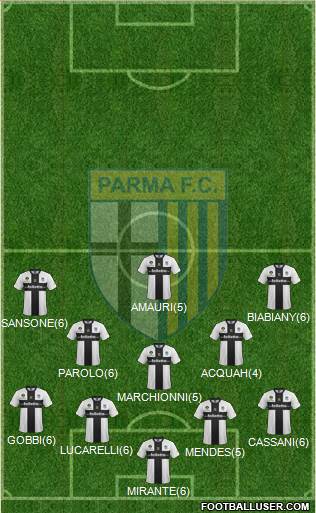 11Amauri · 21Sansone · 7Biabiany · 30Acquah · 16Parolo · 32Marchionni · 18Gobbi · 87Rosi · 29Paletta · 6A. Lucarelli · 83Mirante