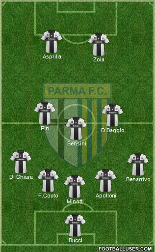 7Biabiany · 11Amauri · 87Rosi · 18Gobbi · 77Ninis · 16Parolo · 19Musacci · 5Zaccardo · 29Paletta · 6Lucarelli · 83Mirante