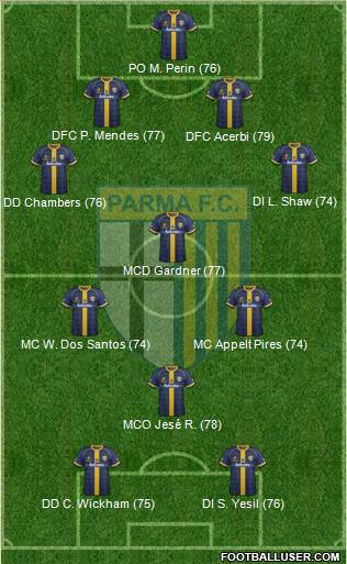 Mirante · Feddal · Lucarelli · Santacroce · Cassani · Nocerino · Lodi · J. Mauri · Rodriguez · Palladino · Varela