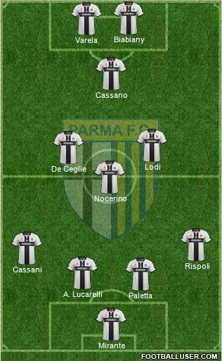 Mirante · Granqvist · Gobbi · Cassari · Paletta · Nocerino · Lodi · Acquash · Biabiany(De Ceglie) · Rodriguez(Varela) · Belfodi(Lucarelli)