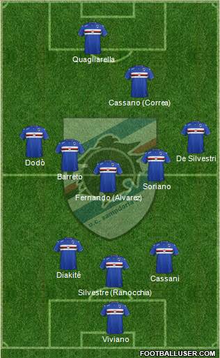 Viviano · Palombo · Regini · Silvestre · Fernando · R. Soriano · Barreto · Sala · De Silvestri · Muriel · Quagliarella