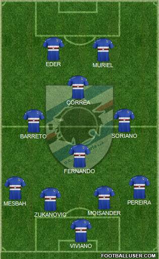 Viviano · Silvestre · Palombo · Zukanovic · Cassani · Fernando · Barreto · Carbonero · Soriano · Eder · Muriel
