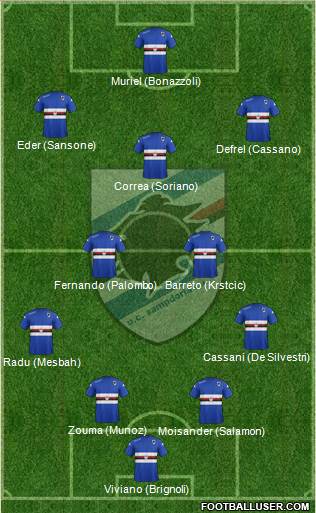 Viviani · MOISANDER · SILVESTRE · Regini · CASSANI · Palombo · BARRETO · FERNANDO · Perotti · Muriel · Eder