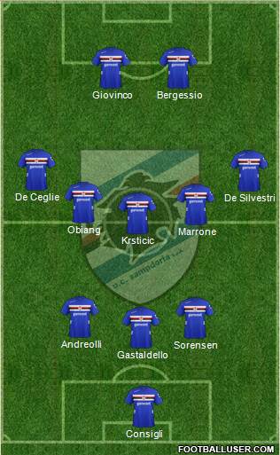 Romero · Gastaldello (c) · De Silvestri · Costa · Palombo · Marrone · Estigarribia · Krsticic · Poli · Benzia · Icardi