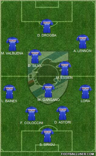 10Maxi Lopez · 21Sansone · 19De Silvestre · 2Estigarribia · 16Poli · 25Krsticic · 14Obiang · 35Rossini · 28Gastaldello · 3Costa · 22Romero