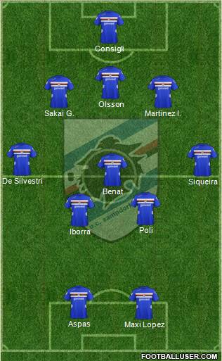 Icardi · Sansone · Krsticic · Poli · De Silvestri · Obiang · Estigarribia · Rossini · Costa · Gastaldello · Romero
