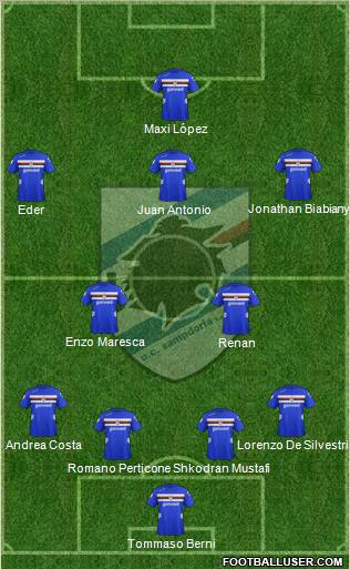 Costa · Rossini · Gastaldello · Berrardi · Mustafi · Krsticic · Maresca · Obiang · Poli · Tissone · Icardi