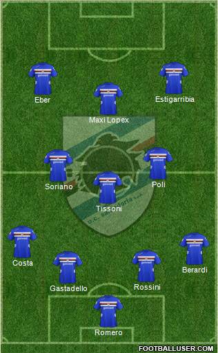 Romero · De Silvestri · Gastaldello · Rossini · Costa · Munari · Maresca · Obiang-Poli (60%-40%) · Estigarribia · Eder · Icardi