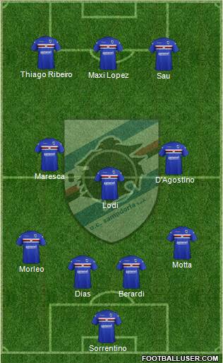 10-Lopez · 7-Ory · 23-Eder · 29-Juan Antonio · 17-Palombo · 16-Poli · 15-Poulsen · 2-Estigarribia · 3-Costa · 28-Gastaldello · 1-Romero