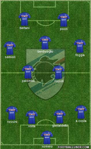 Da Costa · Volta · Gastaldello · Castellini · Padalino · Soriano · Obiang · Lacko · Rispoli · Pozzi · Bertani