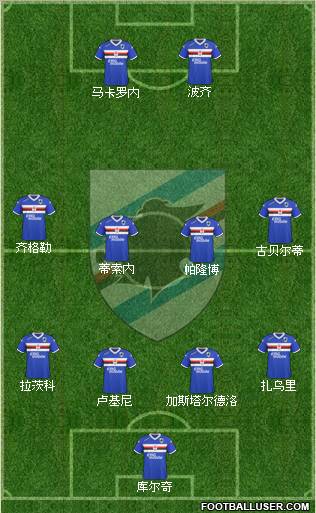 Curci · Gastaldello · Lucchini · Ziegler · Zauri · Poli · Palombo · Guberti · Mannini · Pozzi · Maccarone