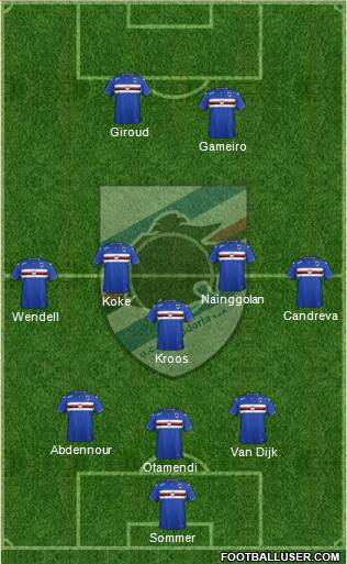 Muriel · Schick · Quagliarella · Barreto · Linetty · Torreira · Regini · De Silvestri · Silvestre · Sala · Viviano