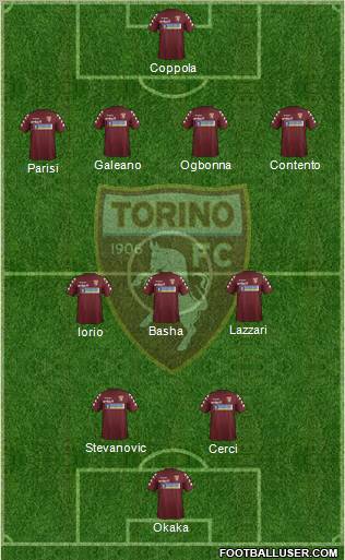 34. F.Coppola [71] · 6. A.Ogbonna [78] C. · 36. M.Darmian [69] · 25. K.Glik [72] · 13. B.Salamon [67] · 4. M.Basha [70] · 92. S.Verdi [69] · 19. A.Stevanovic [70] · 90. N.Oduamandi [68] · 9. S.Dell'Agnello [67] · 7. M.Antenucci [72]