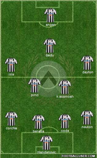 Handanovic · Danilo · Domizzi · Benatia · Asamoah · Isla · Pereyra · Armero · Torje · Fabbrini · Di Natale