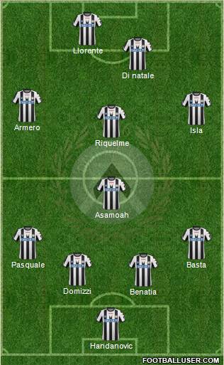 1. Handanovic · 5. Danilo · 11. Domizzi · 17. Benatia · 3. Isla · 7. Badu · 27. Armero · 8. Basta · 66. Pinzi · 83. Floro Flores · 10. Di Natale (C)