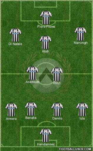 10 A Di Natale · 23 A Abdi · 8 D Basta · 27 P Armero · 20 K Asamoah · 30 T Doubai · 7 E Agyemang-Badu · 24 J Ekstrand · 17 M Benatia · 5 Danilo L · 1 S Handanovic
