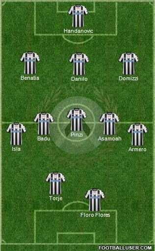 Handanovic · Danilo · Domizzi · Benatia · Basta · Isla · Pinzi · Asamoah · Armero · Floro Flores · Di Natale