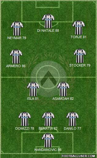 HANDANOVIC 88 · QUARTEY 81 · BENATIA 86 · DANILO 82 · ISLA 83 · ASAMOAH 84 · ARMERO 92 · STOKER 85 · JOVETIC 80 o DZSUDZSAK 80 · NEYMAR 81 · DI NATALE 89