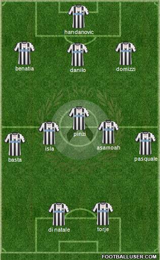Handanovic · Danilo · Benatia · Domizzi · Basta · Isla · Asamoah · Armero · Pinzi · Torje · Di Natale