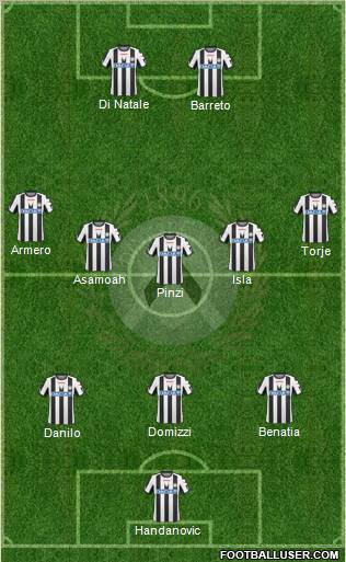 Di Natale · Torje · Isla · Armero · Pinzi · Asamoah · Badu · Domizzi · Benatia · Danilo · Handanovic