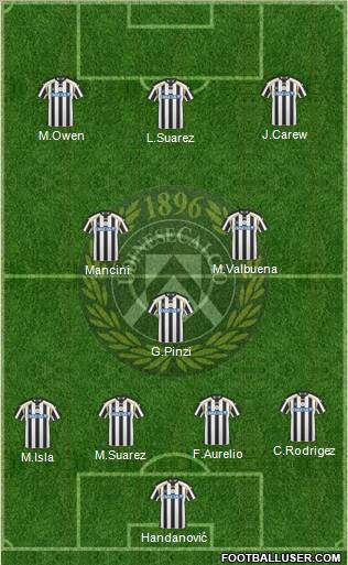 S.Handanović · M.Domizzi · M.Carrozzieri · P.Armero · D.Ferronetti · E.Badu · M.Isla · M.Valbuena · V.Bystrov · L.Suarez · J.Carew
